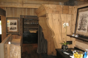 Although the emphasis of Leatherwood's work is in the field of restoration, we also create "historic" buildings. To assist our operation Leatherwood has developed a fabrication shop that specializes in processing vintage wood for use in both restorations and recreations. Our custom saw mill was designed to cut extraordinary long beams that can be fabricated out of either old or new timbers. An ample supply of historic materials is kept on hand for use in timber framing or the production of flooring, paneling and other wood products.